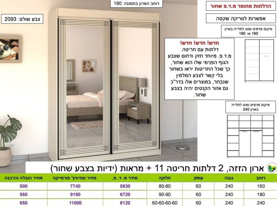 ארון הזזה ,חריטה 11,דלת מראה ר.א ריהוט