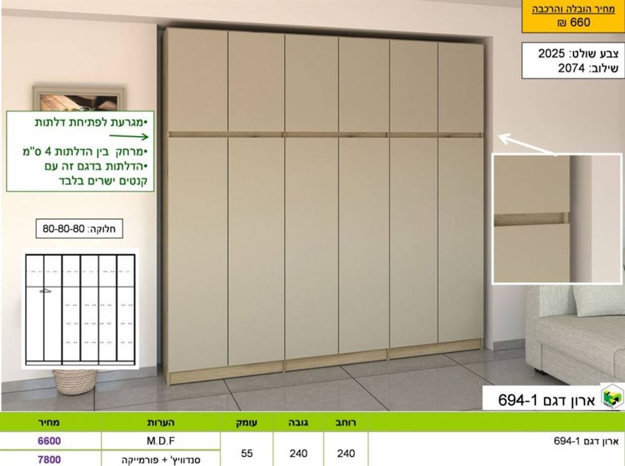 ארון בגדים דגם 694-1 6 דלתות ,  ר.א ריהוט