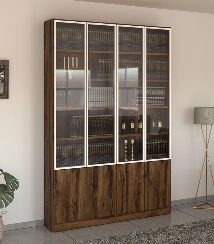 יחידת קודש P620 ספריה  מעוצבת להפליא, שילוב של דלתות סגורות , דלת זכוכית עם פרופיל אלומיניום לבן סדרת קלאס.