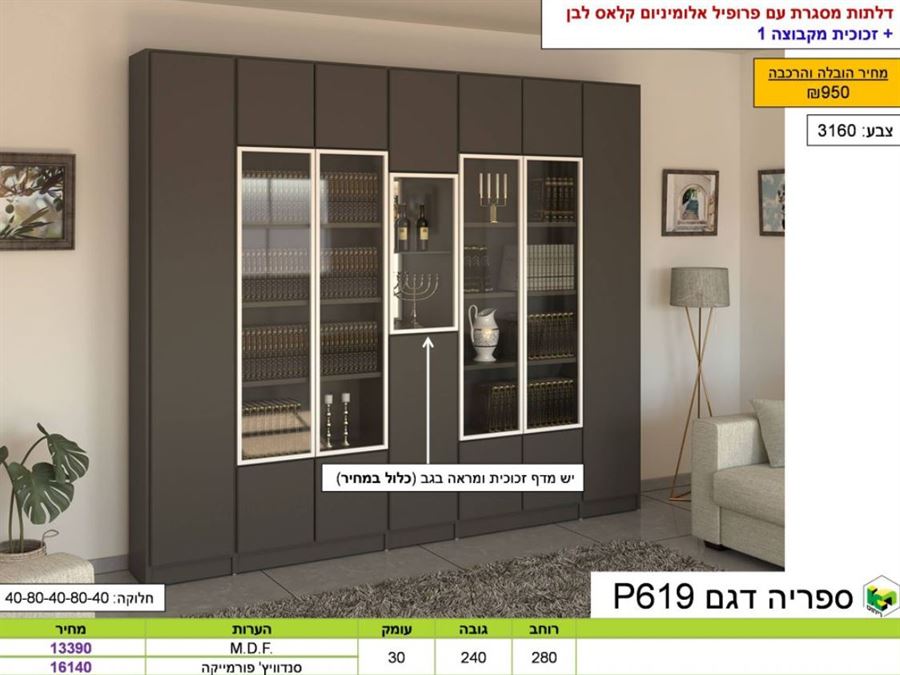 קטלוג זכוכיות לבחירה ארון קודש רא יחידת ספרי קודש P619 רא ריהוט