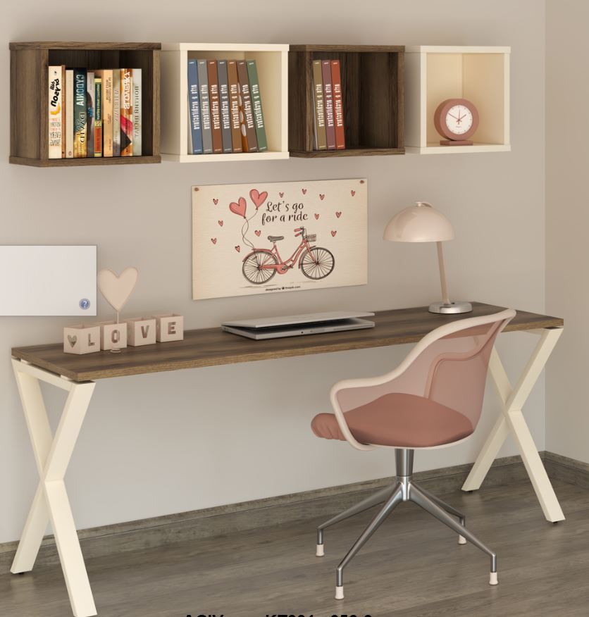 שולחן כתיבה, שילוב של פלטה שולחנית, פלטה צפה על שני פרופולים לחיזוק.עובי 2.4 ס"מ . רגלי  איקס 4 גוונים לבחירה